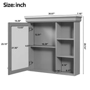Wall-Mounted Medicine Cabinet With Mirror, Adjustable Shelf Storage For Bathroom - Gray
