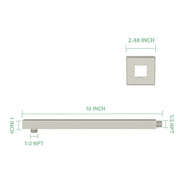 Wall Mounted Shower Arm With Flange, 16" Stainless Steel For Rain Shower Heads - Gold