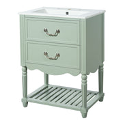Wave Design Bathroom Vanity With Sink, 2 Drawers Cabinet, Open Shelf - Green